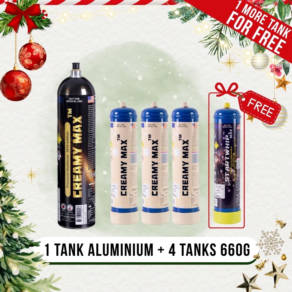 [Extra 1 More Tank] 1x CreamyMax Aluminum 640G Cream Chargers + 3x CreamyMax 660 Tanks + 1x Startwhip 660G