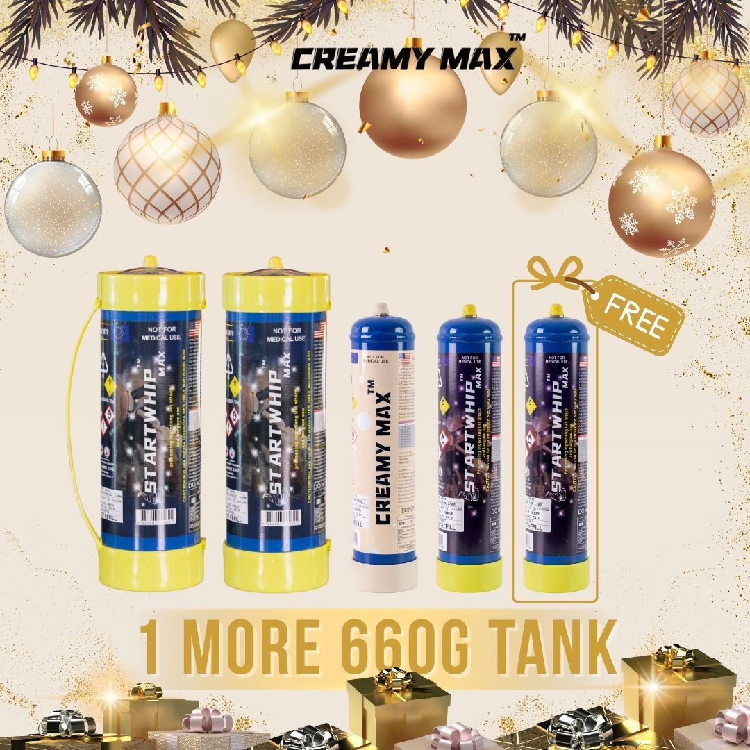 [Extra 1 More Tank] 2x STARTWHIP MAX 3.3L Cream Chargers 2000G N2O + 2x Startwhip 660g & 1x CreamyMax 660g