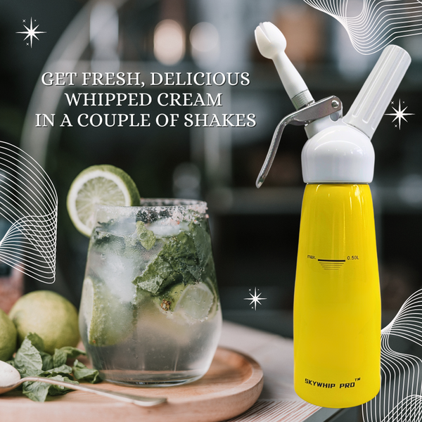 - Skywhip Ultra Pro+ 8.4g cream chargers, 20% excess than normal silver whipped cream charger N2O
